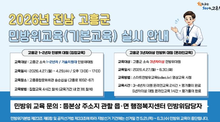 ![]() 고흥군, 2026년 상반기 민방위 기본교육 실시 |