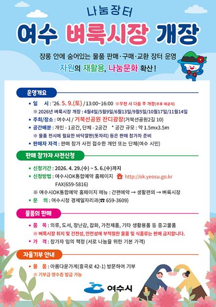 한편, 다음 여수 벼룩시장은 6월 13일 오후 1시부터 4시까지 같은 장소에서 개최될 예정이다.