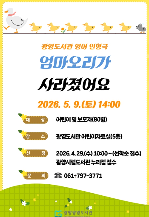 ![]() 어린이 영어 인형극 「엄마 오리가 사라졌어요」 공연 |