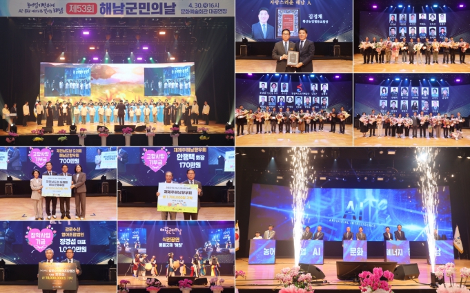 ‘농어업 기반 위에 AI·문화·에너지로 빛나는 해남’을 주제로 열린 이번 행사는 해남의 미래 비전을 공유하고 군민 화합을 다지는 자리로 마련됐다. 특히 지역사회에 귀감이 되는 군민들에 대한 시상과 함께 다양한 세대의 군민들이 함께 만들어 나가는 참여 행사로 개최되었다.
