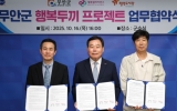 무안 박인석 기자2025. 10.17[뉴스채널]전남 무안군은 지난 16일 무안군청 군수실에서 행복얼라이언스 및 행복도시락사회적협동조합과 함께 결식 우려 아동을 위한 '행복두끼 프로젝트' 업무협약을 체결했다. 이날 협약식에는 김산 군수, 조민영 행복얼라이언스 사무국 본부장, 최준 행복도시락사회적협동조합 사무국장이 참석했다. '행복두끼 프로젝트'는 지방정부·기업·사회적기업이 협력해 아동 결식문제를 해결하는 사회공헌 프로그램으로, 관내 결식 우려 아동 20명에게 1년간 매주 1~2회 총 4천 2백만원 상당의 밑반찬 도시락을 제공하여 끼니 해결이 어려운 아이들의 건강한 ...
