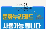 광산구 박인석 기자2025. 10.10[뉴스채널]군산시가 12일까지 열리는 '2025 군산시간여행축제' 기간 동안 통합문화이용권(문화누리카드) 임시 가맹점을 운영해 시민들이 축제 현장에서 더욱 쉽고 편리하게 통합문화이용권(문화누리카드)를 사용할 수 있도록 지원했다. 통합문화이용권(문화누리카드)는 문화체육관광부와 한국문화예술위원회가 추진하는 문화복지사업으로, 기초생활수급자 및 차상위 계층에게 연간 14만 원의 문화비를 지원해 공연·영화·도서·체육·국내관광 등 다양한 문화생활을 누릴 수 있도록 돕는 제도이다. 일반적으로 식·음료 결제가 제한되지만, 지역축제와 같은 특...