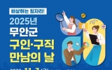무안 박인석 기자2025. 10.02[뉴스채널]전남 무안군은 오는 11월 7일 목포대학교 남악캠퍼스 글로컬스타트업센터 컨벤션홀에서 개최하는 『2025년 무안군 구인·구직 만남의 날』행사에 참여할 기업을 모집한다. ‘비상하는 일자리’라는 주제로 무안군이 주최하고 전남인력개발원이 주관하는 이번 행사는 구직자와 관내 우수기업 간 만남을 통해 구직자에게 취업기회를, 구인업체에는 인재채용의 기회를 제공하기 위해 열리는 원스톱 일자리 지원사업의 일환이다. 군은 행사 당일 현장채용관 15개사(간접참여 15개)와 함께 취업컨설팅, 입사지원서 컨설팅, 취업·진로상담, 이력서 사진...