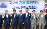 전라북도도 박인석 기자2025. 09.25[뉴스채널] 전북특별자치도교육청은 25일 국회의원회관에서 유정기 교육감 권한대행과 이원택 더불어민주당 전북도당위원장이 참석한 가운데 ‘제2회 국회의원 교육정책 간담회’를 개최했다. ‘교육을 통해 전북의 미래를 살려내자’는 주제로 열린 이날 정책간담회에는 이원택 도당위원장을 포함해 한병도·안호영·신영대·윤준병·이성윤·박희승 의원 등 전북지역 국회의원이 대거 참석해 큰 관심을 보였다. 이날 간담회에서는 새 정부의 새로운 교육정책 기조에 발맞추어 전북교육의 미래 비전을 세우고, 지역적 특수성과 현안을 중앙정부 정책과 유기적으로 ...