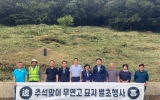 [뉴스채널]장흥군 관산읍행정복지센터는 추석 명절을 앞두고 지역 공동묘지 6개소에 대하여 벌초 작업을 진행했다고 22일 밝혔다. 지난 19일에는 관산읍 남송리 산 15에 위치한 장흥동학농민혁명군 묘역에서 장흥군의회 김기용 부의장 등 군의원 3명과 관산읍장 유양선, 관산읍민회, 관산읍이장자치회 임원 등이 참석한 가운데 합동 차례가 지내졌다. 관산읍 남송리 공동묘지는 옥산촌 전투(1894년 장흥지역에서 벌어진 동학농민군과 관군·일본군 사이의 교전)가 벌어진 곳이다. 관산읍은 당시 전투에 희생된 농민군의 넋을 위로하며 매년 벌초를 해...