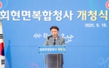 전라북도도 박인석 기자2025. 09.18[뉴스채널]군산시 회현면(면장 정용남)이 18일 청사 내 광장에서 ‘행정복지센터’와 ‘너나들이 쉼터’ 완공을 기념하는 복합청사 개청식을 개최했다. 이날 개청식에는 강임준 군산시장, 김우민 군산시의장, 신영대 국회의원, 시·도의원, 관내 기관장 및 초청 내빈을 비롯한 300여 명이 참석하여 회현면 복합청사의 새로운 출발을 축하했다. 행사는 회현면 풍물팀의 길놀이를 시작으로 한 식전 공연과 복합청사 신축 유공자에 대한 표창·감사패 수여, 내외빈 축사, 테이프 커팅식, 기념 촬영, 청사 관람 순으로 진행됐다. 이번에 완성된 회현면 ...