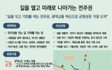 담양 박인석 기자2025. 09.18[뉴스채널]전북특별자치도가 전주권을 아우르는 광역교통망 청사진을 구체화하며, 지역 교통혁신의 새로운 이정표를 세우고 있다. 도는 지난 3일 전주권 광역교통시행계획(안)을 국토교통부 대도시권광역교통위원회에 제출했다고 18일 밝혔다. 이번 계획은 제5차 대도시권 광역교통시행계획(2026~2030)에 반영하기 위한 것으로, 총사업비는 2조 1,916억 원으로, 이 중 1조 772억 원은 국비로 계획돼 있다. 이번 사업계획에는 전주시를 중심으로 완주, 김제, 익산, 군산을 잇는 광역도로와 광역철도 등 15개 핵심 사업이 포함됐다. 계...