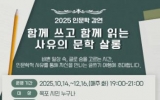 목포 박인석 기자2025. 09.18[뉴스채널]목포시립도서관은 오는 10월 14일부터 매주 화요일 오후 7시, 인문학 글쓰기 강연 '함께 쓰고 함께 읽는, 사유의 문학 살롱'을 운영한다. 이번 강연은 김희영 작가의 진행으로 총 10회차에 걸쳐 진행되며, 참가자들은 일상 속 생각을 글로 표현하고 필사·합평·낭독회를 통해 글쓰기 감각을 키워나가게 된다. 이를 통해 인문학적 사유를 확장하고, 스스로의 삶을 성찰하는 뜻깊은 시간이 될 것으로 기대된다. 도서관 관계자는 “이번 프로그램을 통해 지역 주민들이 인문학을 생활 속에서 가까이하며, 글쓰기를 통해 자신을 돌아보는...