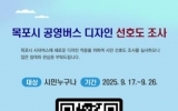 목포 박인석 기자2025. 09.18[뉴스채널]목포시는 공영버스에 적용할 새로운 디자인 선정을 위해 시민 설문조사를 오는 9월 17일부터 26일까지 10일간 실시한다고 밝혔다. 설문조사는 목포시청 홈페이지와 버스 내부·주요 승강장에 부착된 안내문의 QR코드를 통해 참여할 수 있으며, 가까운 동 행정복지센터에서도 오프라인으로 참여할 수 있다. 이번 공영버스 디자인안은 A안과 B안 두 가지로 마련됐으며, 각 안에는 5가지 색상이 적용되어 있다. 설문에 참여한 시민은 먼저 선호하는 시안을 고른 뒤, 해당 시안에서 2가지 색상을 선택할 수 있다. 이렇게 선정된 최...