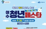여수 박인석 기자2025. 09.17[뉴스채널]여수시는 오는 9월 20일 청년의 날을 맞아 ‘청년이 행복한 도시, 여수’라는 주제로 웅천친수공원 일원에서 ‘2025 청년 페스타’를 개최한다. 올해로 다섯 번째를 맞는 청년 페스타는 청년들이 일상에서 벗어나 웃음과 감성이 있는 힐링의 시간을 갖고 함께 즐길 수 있는 문화공연을 통해 세대 간 화합과 소통, 지역 청년문화 활성화에 기여하고자 마련됐다. 기념식은 오후 5시부터 열리며 우수 청년 시상과 청년 선언문 낭독에 이어 청년의 날 기념 퍼포먼스가 진행된다. 이어 오후 6시부터는 여수시청년지원센터 주관 ‘웃음이랑, ...