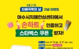 여수 박인석 기자2025. 09.11[뉴스채널]여수시는 치매극복의 날(9월21일)을 기념하고 치매 인식개선과 치매 친화적 환경 조성을 위해 9월 15일부터 21일까지 ‘치매극복주간 온라인 이벤트’를 진행한다. 이번 이벤트는 치매극복주간에 여수시치매안심센터를 방문해 인증 사진을 남긴 참여자 중 선착순 200명에게 스타벅스 모바일 쿠폰을 증정하는 행사로, 지역 주민 누구나 참여할 수 있다. 참여 방법은 여수시치매안심센터 간판과 치매파트너 캐릭터(단비)가 나오도록 손하트 인증 사진을 촬영한 뒤 여수시치매안심센터 인스타그램을 팔로우하고 인증 사진과 성명, 연락처를 다이렉...