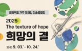 전라북도도 박인석 기자2025. 09.10[뉴스채널]전북특별자치도가 (사)전라북도장애인미술협회(회장 정성수)와 함께 장애인들의 예술적 재능 발휘와 사회적 소통을 위한 ‘2025 희망의 결’ 장애인 미술 공모전을 개최한다. 이번 공모전은 도내 거주 장애인을 대상으로 하며, 접수 기간은 9월 3일부터 10월 20일 오후 6시까지다. 참가자는 신청서, 장애인 증명서, 작품 포트폴리오를 제출해야 하며, 작품은 10월 13일부터 24일까지 방문 또는 택배로 접수할 수 있다. 공모 분야는 서양화(유화, 아크릴, 수채화) 및 회화 관련 자유주제이며, 1인 1점 제출이 가능하다. 작...
