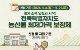 전라북도도 박인석 기자2026. 04.06[AI 호남뉴스]전북특별자치도는 가격 변동성이 큰 농산물에 대한 경영안정 지원을 위해 ‘2026년 주요농산물 가격안정 지원사업’ 신청을 4월 6일부터 오는 5월 29일까지 접수한다. 이 사업은 기상 악화나 과잉 생산 등으로 시장가격이 기준가격보다 하락할 경우, 그 차액의 최대 90%를 보전하는 제도로, 농가의 최소 소득을 보장하기 위한 대표적인 안전망 정책이다. 올해 상반기 신청 대상 품목은 건고추, 생강, 노지감자 등 3개 품목이며, 전북자치도에 주소를 두고 도내 농지에서 직접 생산한 농산물을 농협이나 시군 통합마케팅 조직을 ...