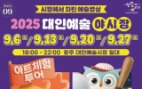 김제 박인석 기자2025. 09.05[뉴스채널]광주의 대표 문화축제인 ‘대인예술야시장’이 가을밤 더 풍성한 예술밥상으로 돌아왔다. 광주광역시는 9월6일부터 11월22일까지(추석연휴 10월 4일과 11일 제외) ‘2025년 하반기 대인예술야시장’을 총 10회 운영한다. 매주 토요일 오후 6시부터 10시까지 진행된다. 하반기 개장은 ‘광주 방문의 해’, ‘광주디자인비엔날레’, ‘세계양궁선수권대회’ 등 광주 대표 행사와 연계해 국내외 관광객이 함께 즐길 수 있는 야간 복합 문화관광 콘텐츠(공연·전시·체험)로 기획됐다. 그동안 대인예술시장은 전통시장 먹거리를 현대...