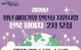 전라북도도 박인석 기자2026. 04.03[AI 호남뉴스](재)전북국제협력진흥원은 도내 청년의 해외 진출과 글로벌 역량 강화를 위해 '청년 해외기업 인턴십 지원사업' 참여자를 오는 4월 7일부터 4월 14일까지 모집한다고 밝혔다. 본 사업은 2025년부터 재외동포청과 협력해 추진되고 있으며, 해외 한상기업 네트워크를 활용해 참여자들이 신뢰도 높은 해외 기업에서 근무할 수 있는 기회를 제공하고 있다. 모집 인원은 도내 청년 5명 이내로, 선발된 청년들은 약 6개월간 해외 기업에서 인턴십을 수행하게 된다. 또한 해외 체류 부담 완화를 위해 최대 6개월간 월 110만 원의 ...