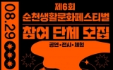 순천 박인석 기자2025. 08.28[뉴스채널](재)순천문화재단은 오는 10월 17일부터 10월 18일까지 순천조례호수공원 일원에서 개최하는 제6회 생활문화페스티벌 참여단체를 공개 모집한다. 순천생활문화단체(동호회) 공연전시체험 및 순천생활문화밴드 경연대회에 참여할 단체를 오는 29일부터 9월 10일까지 모집한다. 공연전시체험 참여대상은 순천에 활동 중인 생활문화 단체이며 생활문화밴드 경연대회 참여 대상은 전남권 동호회 및 아마추어 밴드이다. 순천생활문화단체(동호회) 선정규모는 공연 13팀 내외, 체험전시 10팀 내외이며, 선정된 단체는 20만원에서 4...