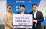 김제 박인석 기자2025. 08.27[뉴스채널]㈜제이디로지스가 전주지역 취약계층 아동들이 성장할 때까지 든든한 울타리가 돼주기로 했다. 전주시와 ㈜제이디로지스, 사단법인 위드인 사람과함께는 27일 전주시장실에서 우범기 전주시장과 이상욱 ㈜제이디로지스 대표, 유서진 위드인 사람과함께 이사장 등이 참석한 가운데 취약계층 아동을 위한 후원 협약식을 가졌다. 이 자리에서 ㈜제이디로지스는 이번 전달식을 통해 초·중·고교에 재학 중인 취약계층 아동 5명에게 월 20만 원씩 연간 1200만 원을 지원키로 약속했다. 지원은 대상 아동이 고등학교를 졸업할 때까지 지속되며,...