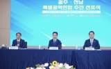 진안 박인석 기자2025. 08.27[뉴스채널]광주시와 전남도가 국가균형성장을 향한 새로운 출발을 선언했다. 광주광역시와 전라남도는 27일 나주시청 대회의실에서 ‘광주·전남 특별지방자치단체 추진 선포식’을 열고,공동협약을 체결했다. 이날 행사에는 강기정 시장과 김영록 지사를 비롯해 신수정 광주시의회 의장, 김태균 전남도의회 의장, 김경수 지방시대위원회 위원장 등이 참석해 상생발전의 의지를 밝혔다. 양 시·도는 수도권 집중 심화와 지방소멸 위기라는 국가적 과제에 대응하기 위해 이재명 정부의 ‘5극3특 국가균형성장 전략’에 발맞춰 공동 행정체제를 구축하기로 했다. ...