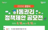 [뉴스채널]광양시는 8월 18일부터 9월 12일까지 '2025년 아동권리 정책제안 공모전'을 개최한다고 밝혔다. 이번 공모전은 아동이 자신의 권리에 대해 고민하고, 일상 속 문제를 바탕으로 정책을 제안함으로써 지역사회의 주체로 참여할 기회를 제공하고자 마련됐다. 공모 주제는 아동의 권리를 보장할 수 있는 정책 전반에 대한 자율 주제이며, 1인 1건 제출이 가능하다. 아동은 유엔아동권리협약에서 보장하는 4대 권리(생존권, 보호권, 발달권, 참여권)를 바탕으로 자유롭게 아이디어를 제안할 수 있다. 시는 접수된 제안 중 총 6건...
