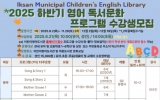 익산 박인석 기자2025. 08.18[뉴스채널]익산시가 독서·문화 강화로 시민들의 영어 실력을 높이고, 문화 체험 기회를 넓힌다. 시는 익산시립어린이영어도서관(ICEL)에서 오는 9월부터 12월까지 하반기 영어독서문화강좌를 운영한다고 18일 밝혔다. 이번 강좌는 유아, 초등학생, 성인을 대상으로 총 15개 반, 153명을 모집하며, 수준별 맞춤형 과정을 통해 몰입도 높은 영어 학습 기회를 제공한다. 수강 신청은 오는 21일 영어도서관 누리집에서 선착순으로 가능하다. 유아·성인 강좌는 오전 10시, 초등 강좌는 오후 2시에 접수를 시작한다. 수강료는 ...