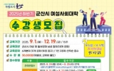 군산 박인석 기자2025. 08.14[뉴스채널]군산시 여성사회대학이 오는 8월 19일부터 22일까지 하반기 프로그램 수강생을 선착순 모집한다. 이번 프로그램은 ▲직업훈련 교육(패션 양재 등 5개) ▲정보화 교육(기초엑셀 등 2개) ▲생활문화 교육(생활집밥요리 등 2개) ▲교양 교육(보태니컬아트와 색연필화 등 13개) ▲건강 교육(손발지압 건강찾기 등 6개) ▲야간 교육(통기타초급 등 3개) 분야별 총 31개 강좌로 운영되며, 기초엑셀 등 18개 강좌는 남성 회원도 참여 할 수 있다. 교육 기간은 9월 1일부터 12월 19일까지 총 15주(공휴일 제외)이며, 수강료...