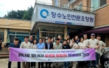 장수 박인석 기자2025. 08.08[뉴스채널]장수군은 지방자치인재개발원에서 연수 중인 제8기 5급승진리더과정 15분임 교육생들이 천천면에 위치한 장수노인전문요양원을 찾아 봉사활동과 정책연구 과제에 대한 현장학습을 펼쳤다고 8일 밝혔다. 이번 활동은 제8기 5급승진리더과정을 수료 중인 15분임 교육생 21명이 1박 2일 일정으로 장수군을 찾아 교육 과정 중 ‘정책연구 현장학습’의 일환으로 추진됐으며 분임장은 장수군청 최석원 산림과장이 맡았다. 교육생들은 요양원 어르신들에게 족욕 서비스를 통해 피로 회복과 건강 증진에 도움을 주고 정성껏 준비한 간식을 직접 전달...
