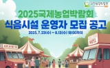 전라남도 박인석 기자2025. 08.04[뉴스채널](재)전라남도국제농업박람회는 2025 국제농업박람회 식음시설 운영자를 오는 13일까지 3주간 모집한다고 밝혔다. 이번 모집은 주제전시관인 농업미래관 옆 뷔페관(288석·600㎡)과 행사장 내 푸드트럭을 대상으로 진행한다. 전남·광주지역 주소를 두고 해당 업종을 정상적으로 운영 중인 업체면 신청할 수 있다. 자세한 내용은 국제농업박람회 누리집의 공고문에서 확인할 수 있으며, 궁금한 사항은 국제농업박람회 행사운영팀으로 문의하면 된다. 박관수 전남도국제농업박람회 사무국장은 “성공적 행사를 위해서는 먹거리가 매우 중요하...