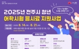 전주 박인석 기자2025. 08.01[뉴스채널]전주시는 미취업 청년의 경쟁력 강화를 돕고 경제적 부담을 덜기 위해 ‘2025 청년어학시험 응시료 지원사업’을 오는 8월 14일부터 21일까지 시행한다고 1일 밝혔다. 이 사업은 청년의 취업 준비를 실질적으로 지원하기 위한 민선 8기 전주시장의 공약사업으로, 2023년부터 매년 운영되고 있다. 올해도 어학시험에 응시한 청년들에게 응시료를 지원할 예정이다. 지원 대상은 미취업 청년(1985~2006년생) 중 시험 응시일부터 사업 공고일까지 전주시에 주민등록이 있는 청년이다. 단, 건강보험 직장가입자 및 사업자등록 보유자...
