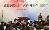 영광 박인석 기자2025. 12.04[AI 호남뉴스]장수군은 4일 장수군을 대표하는 독립운동가이자 민족대표 33인인 백용성 조사의 정신을 기리고 계승하기 위한 ‘독립운동가 백용성 조사 기념관’ 개관식을 성황리에 마쳤다고 밝혔다. 이날 개관식에는 백용성조사 기념사업회 법륜스님과 유수스님, 김관영 전북특별자치도지사, 강윤진 국가보훈부 차관, 최훈식 장수군수, 최한주 장수군의회 의장, 지역 기관·단체 관계자, 주민 등 약 450명이 참석해 기념관 개관을 함께 축하했다. 참석자들은 기념식과 전시 관람을 통해 백용성 조사의 항일정신과 불교계 독립운동의 의미를 되새기는 ...