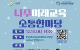 강진 박인석 기자2025. 12.03[AI 호남뉴스]전라남도 나주시가 미래 교육 성과를 시민과 공유하는 ‘나주미래교육소통한마당’을 오는 12월 13일 한국에너지공과대학교 대강당에서 개최한다. 이번 행사는 올해 추진한 교육 프로그램의 성과를 나누고 학생과 학부모가 함께 참여하는 소통 중심의 교육 축제로 꾸며질 예정이다. 나주시와 나주교육진흥재단이 공동 주최하고 나주미래교육지원센터가 주관하는 이번 행사는 오후 2시 식전 공연인 나주이화유스오케스트라 연주를 시작으로 본격 진행된다. 행사에서는 나주교육진흥재단과 나주미래교육지원센터가 추진해 온 주요 사업의 경과보고, 교...