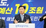 서구 박인석 기자2025. 12.03[AI 호남뉴스]전북특별자치도가 2026년 국가예산 10조 834억 원을 확보하며 사상 첫 ‘10조 원 시대’를 열었다. 전년 대비 8,000억 원 이상 증가한 이번 성과는 대규모 SOC 사업 종료 등 어려운 여건 속에서도 도민과 정치권, 행정이 힘을 모아 이뤄낸 결실이다. 3일 도에 따르면, 전북도 국가예산은 2022년 8조 9,368억 원에서 2023년 9조 1,595억 원으로 9조 원 시대를 열었다. 잼버리 여파로 2024년 9조 163억 원(전년 대비 -1.6%)으로 소폭 감소했으나, 2025년 9조 2,244억 원을 거쳐...