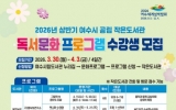 여수 박인석 기자2026. 03.25[AI 호남뉴스]여수시는 오는 3월 30일부터 4월 3일까지 공립 작은도서관 ‘2026년 상반기 독서문화 프로그램’ 수강생을 모집한다고 밝혔다. 이번 프로그램은 유아부터 성인까지 전 연령층을 대상으로 한 맞춤형 강좌 총 12개로 구성되며, 4월부터 5월까지 운영된다. 성인 대상 프로그램은 ▲시니어, 숨한번, 책 한권 끝내기 ▲글이 물드는 시간 ▲책 한장, 뜨개 한 코 ▲책과 영상과의 만남 ▲손바느질로 만나는 그림책 여행 ▲그림책 큐레이션 자격증반 ▲AI로 완성하는 디지털 콘텐츠 제작 등 7개 과정이다. 유아·초등 대상은 ▲그림...