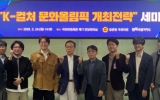 전라북도도 박인석 기자2026. 03.24[AI 호남뉴스]전북특별자치도와 윤준병 국회의원실은 24일 국회의원회관에서 ‘K-컬처 문화올림픽 개최 전략’ 세미나를 개최했다. 이번 세미나는 대한민국 전통문화와 K-팝·K-드라마·K-푸드 등 K-컬처의 세계적 영향력을 결합해 새로운 글로벌 문화행사 모델을 모색하고, 전주를 중심으로 연대도시의 문화자산을 연결하는 ‘K-컬처 문화올림픽’ 추진 전략을 논의하기 위해 마련됐다. 도는 전주하계올림픽 유치 전략을 문화·친환경·AI·평화 등 4대 분야로 설정하고 분야별 전문가 라운드테이블을 운영해 왔으며, 이번 세미나는 그중 문화 분야 논...