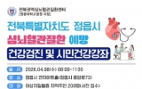 [AI 호남뉴스] 정읍시 보건소가 지역 내 심뇌혈관질환 고위험군의 조기 발견과 체계적인 건강 관리를 돕기 위해 오는 27일까지 ‘심뇌혈관질환 예방 건강검진 및 시민건강강좌’ 참여자 200명을 선착순으로 모집한다. 전북권역심뇌혈관질환센터와 국민건강보험공단, 정읍아산병원, 한국심장재단 등 4개 전문 기관이 협력해 추진하는 이번 사업은 중증 질환으로 발전할 수 있는 심뇌혈관질환 고위험군을 선제적으로 찾아내고 맞춤형 관리를 지원하기 위해 마련됐다. 모집 대상은 정읍시에 거주하는 시민 가운데 이상지질혈증을 앓고 있거나, 국민건강보험공단으...