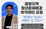 광양 박인석 기자2025. 11.21[AI 호남뉴스]광양시는 순천대학교 ‘글로컬대학30 사업’과 연계해 오는 11월 26일 오후 2시, 광양청년꿈터에서 ‘2025 광양지역 청년 문제 해결 아카데미 포럼’을 개최한다고 밝혔다. 순천대학교는 지역 청년이 직면한 문제를 진단하고 협력적 해법을 찾기 위해 지난 10월 순천을 시작으로 11월 광양, 12월 고흥에서 연속 포럼을 진행 중이다. 이번 포럼은 복지·문화 분야 논의를 중심으로 구성됐다. 이는 지난 9월 순천대학교가 광양·순천·고흥 청년을 대상으로 실시한 설문조사에서 광양 청년의 45%가 ‘복지·문화 분야’를 가...