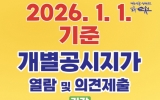 순천 박인석 기자2026. 03.18[AI 호남뉴스] 순천시는 2026년 1월 1일 기준 개별공시지가의 열람 및 의견제출을 3월 18일부터 4월 6일까지 접수한다고 밝혔다. 이번 개별공시지가 열람 대상토지는 30만 5,991필지로, 토지 특성 등을 조사해 산정했으며 가격의 공정성과 객관성을 높이기 위해 감정평가사에게 산정지가의 적정성 여부 등의 철저한 검증 절차를 마쳤다. 개별공시지가 열람은 순천시 토지정보과 및 읍․면․동 행정복지센터를 직접 방문하거나 시 홈페이지 및 부동산공시가격 알리미 등을 통해 확인할 수 있다. 의견이 있는 경우 토지소유자 또는 이해관계...