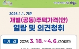 순천 박인석 기자2026. 03.18[AI 호남뉴스] 순천시는 1월 1일 기준 개별(공동)주택 가격 열람 및 의견제출 기간을 3월 18일부터 4월 6일까지 운영한다고 밝혔다. 이번 열람 대상 개별주택은 32,223호, 공동주택은 90,057호로 개별(공동)주택 특성 등을 조사해 산정했으며, 가격의 공정성과 객관성을 높이기 위해 한국부동산원(순천지사)의 산정가격 적정성 여부 등의 검증 절차를 마쳤다. 개별(공동)주택 가격의 열람은 세정과 및 읍면동 행정복지센터를 방문하거나 순천시 누리집 및 부동산공시가격알리미를 통해 확인할 수 있다. 열람가격에 의견이 있는 소유자...