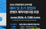 전라북도도 박인석 기자2026. 03.16[AI 호남뉴스](재)전북특별자치도 콘텐츠융합진흥원 전북콘텐츠코리아랩은 콘텐츠 분야 예비 창업자와 3년 이내 초기 창업기업의 경쟁력 강화를 위한 콘텐츠 제작지원사업 참여자를 모집한다. 전북콘텐츠코리아랩은 지역 기반의 지속 가능한 콘텐츠 창·제작 생태계 조성과 활성화를 위해 운영되고 있으며, 도내 콘텐츠 창작자와 초기 창업기업의 창작 활동 및 사업화를 지원하고 있다. 이번 제작지원사업은 통합 공고 형태로 진행되며, ▲ 예비 창업자 시제품 제작지원, ▲ 초기 창업기업 사업화 지원 등 두 개 분야로 구분해 추진한다. 창·제작자 시...