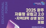 함평 박인석 기자2025. 11.14[뉴스채널]광주시교육청은 오는 17일 김대중컨벤션센터에서 ‘2025 광주 자율형 공립고 2.0 발전 방안 포럼’을 개최한다. 이번 포럼은 ‘지역교육 혁신을 위한 동행’을 주제로 광주 자율형 공립고와 지역대학 간 상생협력 방안을 모색하는 자리다. 교육부 조수원 연구사가 자공고 2.0 정책 방향을 소개하고, 전남대 강성모 교수가 ‘고교-대학 연계의 필요성’을 주제로 발표한다. 이어 광주제일고 남완기 교감과 조선대 양준영 입학사정관이 자공고 운영 사례와 대학 협력 사례를 공유하며 현장의 경험과 과제에 대해 논의하는 시간을 갖...