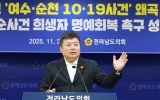 [뉴스채널]전라남도의회 정영균 의원(순천1)이 지난 11월 11일 열린 여순사건지원단 행정사무감사에서 여순사건의 시실 왜곡된 인식 확산과 청소년 세대의 역사 인식 부족 문제를 지적하며 “도 차원의 체계적인 모니터링 시스템 구축과 교육청과의 연계 교육 확대가 시급하다”고 강조했다. 정영균 의원은 “여순사건은 가해자·피해자 간의 갈등뿐 아니라 후손 세대 간의 사회적 대립까지 초래할 수 있는 민감한 사안”이라며 “사실 왜곡에 대한 모니터링이 체계적으로 이루어지지 않고 있는 것은 심각한 문제”라고 지적했다. 이에 대해 이길용 여순사건지...