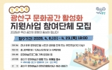 광산구 박인석 기자2026. 04.13[AI 호남뉴스]광주 광산구가 지역 유휴 문화공간을 열린 시민 문화 거점으로 활용하는 ‘2026년 문화공간 공유 활성화 지원사업’을 추진한다. 사용이 활발하지 않은 공공‧민간 문화공간을 시민의 문화 체험 및 예술 프로그램 운영 장소로 개방해, 시민 간의 문화적 연대를 강화하고 일상 속 문화 향유 기회를 확대한다는 취지다. 문화공간은 창작 예술 활동, 시민을 위한 여러 프로그램 운영이 가능한 시설로, 공연장, 전시시설, 도서관, 다중 이용 창작공간 등이 대표적 예다. 광산구는 23일까지 사업에 동참할 단체를 모집한다. 광산구에...