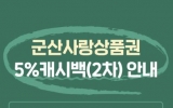 군산 박인석 기자2025. 11.11[뉴스채널]군산시가 행정안전부로부터 지역사랑상품권 발행 관련 특별지원 국비 보조금을 추가로 교부받아 특별 캐시백 적립 혜택을 제공한다. 혜택은 11월 10일부터 예산이 소진될 때까지 시행되며, 모바일형 및 카드형 군산사랑상품권을 사용하는 시민이 대상이다. 예산은 집행이 우수한 전국 32곳에만 추가 교부된 특별지원비로 추진되며, 총 171억 4천만 원 규모의 사업 예산에서, 군산시는 8억 6천만 원을 전액 국비로 교부받아 진행한다. 이번 사업으로 시민들은 월 최대 70만 원 사용 시 추가 캐시백 한도 3만 5천 원 혜택을 제공...