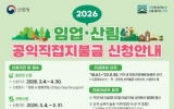 [AI 호남뉴스]순천시는 2026년 임업‧산림 공익직접지불금 신청접수를 오는 3월 4일부터 4월 30일까지 실시한다고 밝혔다. 임업직불제는 산림의 공익적 기능을 증진하고 임업인의 소득안정을 위해 지급대상 산지에서 대추, 호두, 밤 등 임산물을 생산하거나, 나무를 심거나 가꾸는 육림업에 종사하는 임업인에게 직불금을 지급하는 제도이다. 지급 대상은 임산물생산업의 경우 2019년 4월 1일부터 2022년 9월 30일까지 임야 대상 농업경영체로 등록된 산지에서 직전 1년 이상(연간 60일 이상) 임산물 생산업에 종사하고, 연간 임산물 ...