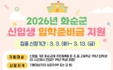 화순 박인석 기자2026. 02.27[AI 호남뉴스]화순군은 2026학년도 초‧중‧고등학교 신입생 가정의 교육비 부담을 완화하고 보편적 교육복지를 실현하기 위해 입학준비금 1인당 20만 원을 화순사랑상품권으로 지원한다고 27일 밝혔다. 지원 대상은 사업 기간 내 신청일 기준 화순군에 주민등록을 둔 초‧중‧고등학교 1학년 입학생으로, 타 시‧군에서 전입한 1학년 학생도 포함된다. 다만, 다른 법령 또는 조례에 따라 입학 관련 비용을 지원받은 경우에는 중복 지원이 제한된다. 사업 기간은 2026년 3월부터 11월까지이며, 특히 3월 3일부터 3월 13일까지를 집중 신...