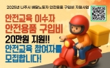 장흥 박인석 기자2025. 11.05[뉴스채널]전라남도 나주시가 사고 위험에 노출된 배달 노동자의 안전 확보와 사고 예방을 위해 발 벗고 나섰다. 나주시는 2025년 고용노동부 노동약자 일터개선 지원 공모사업으로 선정돼 사업비 1283만 원을 확보하여 ‘2025년 배달노동자 안전용품 구입비’를 지원한다. 이번 사업은 배달 과정에서 빈번히 발생할 수 있는 이륜차 교통사고를 예방하고 안전한 노동환경을 조성하기 위한 것으로 나주시에 거주하는 배달노동자 50명을 대상으로 한다. 지원 대상은 공고일 기준 나주시에 주민등록상 주소를 두고 활동 중인 배달노동자로 배달대행업...