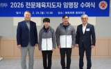 전라북도도 박인석 기자2026. 02.23[AI 호남뉴스]광주광역시체육회가 23일 15시 체육회관 중회의실에서 ‘2026 전문체육지도자 임명장 수여식’을 개최했다고 밝혔다. 수여식에는 전갑수 체육회장, 김영삼 사무처장, 전문체육지도자 등 관계자 50여명이 참석한 가운데 제107회 전국체육대회 등을 앞두고 훈련 지도에 전념하고 있는 지도자들을 임명하고 격려했다. 시 체육회는 육상, 복싱, 펜싱 등 27개 종목에 29명의 전문체육지도자들을 배치하여 지역 선수들의 경기력 향상과 체계적 선수 육성을 통한 지역 체육 경쟁력 강화를 도모한다. 모든 지도자는'국민체육진흥법...