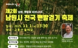 [뉴스채널]제2회 남원시 전국 맨발걷기 축제, 11월 1일 교룡산 둘레길에서 개최 남원시가 주최하고 맨발걷기국민운동본부 남원지회가 주관하는 ‘제2회 남원시 전국 맨발걷기 축제’가 오는 11월 1일 오후 1시 30분, 교룡산 둘레길 일원에서 열린다. 이번 행사는 남원시와 맨발걷기국민운동본부가 공동으로 주최하며, 전국 각지에서 참가자들이 모여 건강과 힐링, 그리고 문화를 함께 나누는 걷기 축제의 장이 될 전망이다. 참가자들은 황톳길과 소나무 숲길, 역사 탐방로를 따라 걸으며 단순한 걷기를 넘어 마음의 평안과 자연 치유의 시간을 갖...