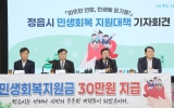 전라남도 박인석 기자2025. 12.15[AI 호남뉴스]정읍시와 정읍시의회가 장기화된 경기 침체로 어려움을 겪는 시민들의 생활 안정을 위해 다시 한번 뜻을 모았다. 이학수 정읍시장과 박일 정읍시의회 의장은 15일 시청 대회의실에서 기자회견을 열고, 모든 시민에게 1인당 30만원의 ‘민생회복지원금’을 지급한다고 밝혔다. 이번 지원금 지급 결정은 고물가와 난방비 부담 등으로 인해 시민들이 체감하는 생활 위기가 한계에 다다랐다는 판단에 따른 것이다. 실제 지난 1일 한국은행 조사 결과에 따르면, 정부의 민생회복소비쿠폰 사용 종료 이후 카드 매출 증가율이 7월 4.9%...