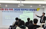 해남 박인석 기자2025. 10.27[뉴스채널]전북특별자치도교육청이 직업계고 학생들의 진로 선택을 돕는다. 전북교육청은 27일 전주 이비스앰배서더 호텔에서 도내 직업계고 진로 미결정 학생 및 취업희망자를 대상으로 ‘나를 찾는 하루, 직업계고 취업로드맵’ 취업캠프를 개최했다고 밝혔다. 이 캠프는 직업계고 진로 미결정 및 취업희망 학생 80여 명을 대상으로 취업목표 설정과 진로 설계 기회를 제공하고, 전문가 취업특강과 직무탐색 활동을 통해 취업마인드 함양 및 진로 인식 제고를 위해 마련됐다. 주요 프로그램은 △선취업 후진학 및 취업마인드 특강 △직장예절 및...