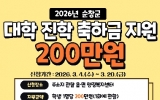 순창 박인석 기자2026. 04.15[AI 호남뉴스]순창군은 (재)순창군옥천장학회에서 대학 신입생에게 1인당 200만원씩 ‘대학 진학 축하금’을 지급했다고 15일 밝혔다. ‘대학 진학 축하금 지원사업’은 순창군에서 장학회에 사업비를 출연해서 추진하는 사업으로 지역 학생들의 대학 진학을 축하하고 학부모의 교육비 부담을 경감하기 위해 마련됐다. 군에 따르면, 지난 3월 4일부터 20일까지 접수한 결과 총 179명이 신청해 중복지원자 등 5명을 제외하고 174명이 대상자로 선정됐다. 여기에 관내 고등학교 졸업자는 162명이며, 관외고등학교 졸업자 6명, 검정고시 ...